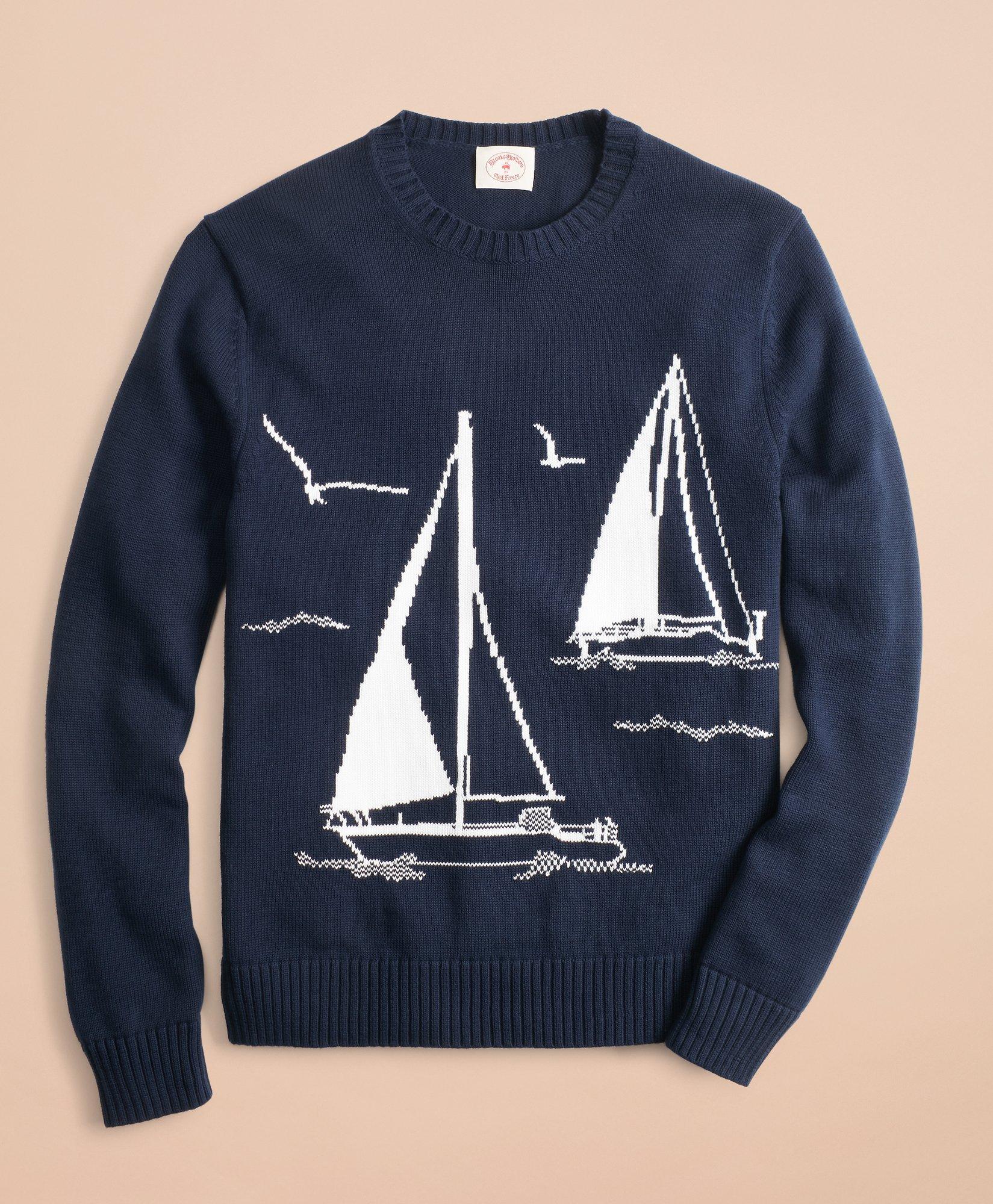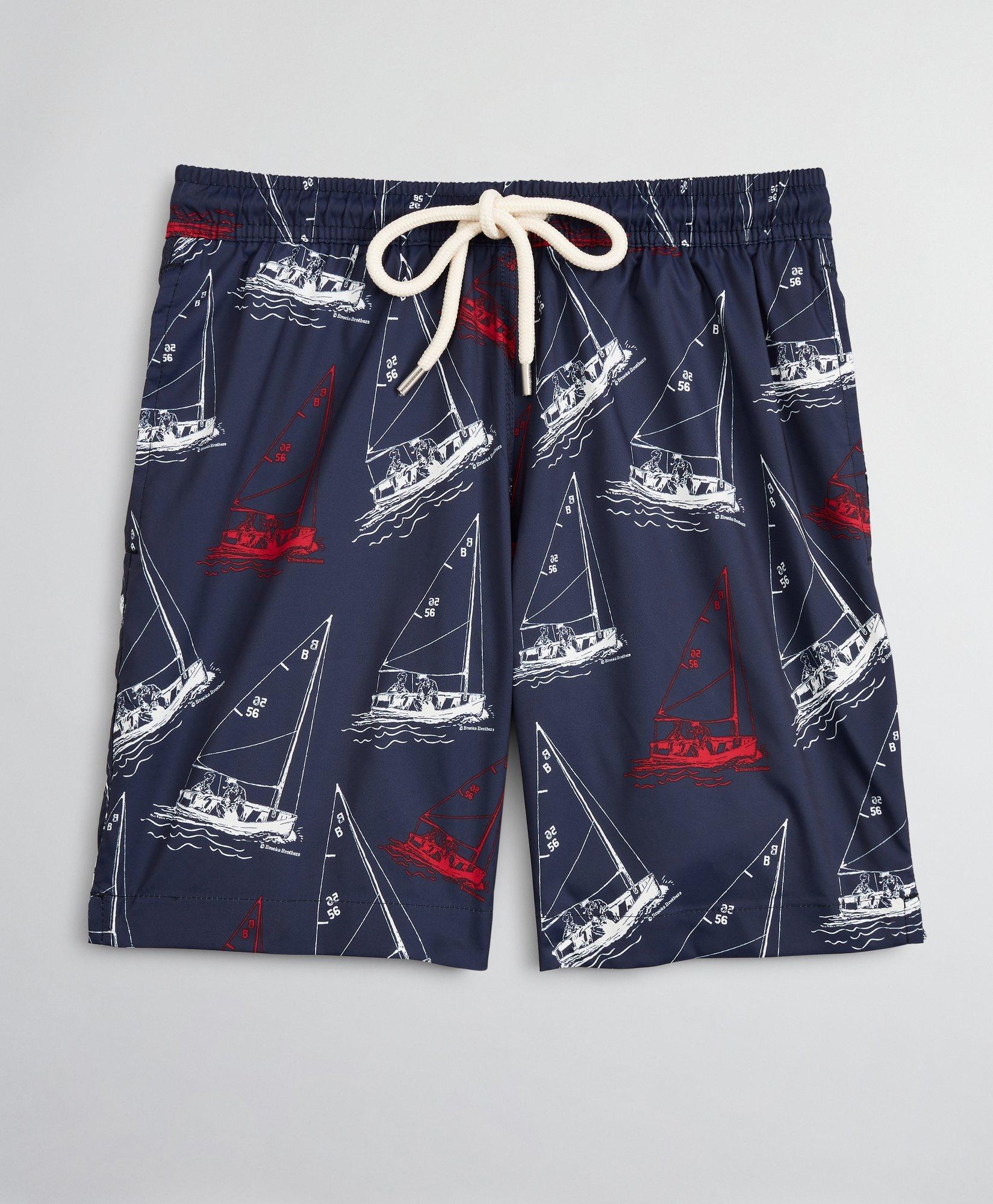 Buy Brooks Brothers Mens Yellow Clark Sailboat Embroidered Pants. An essential for your next vacation beach trip or day by the pool these classic swim trunks are made with quick-dry stretch fabric in a sailboat print. Set sail in our intarsia sweater with a nautical motif thats made for open-water adventure and boardwalk brunches.